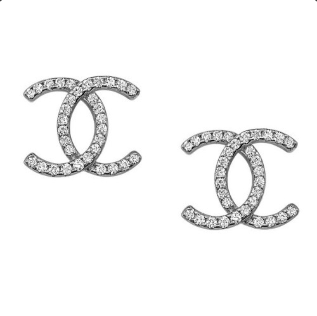 Full Stone Chanel style Earrings studs from Silver 925 1 cm size
