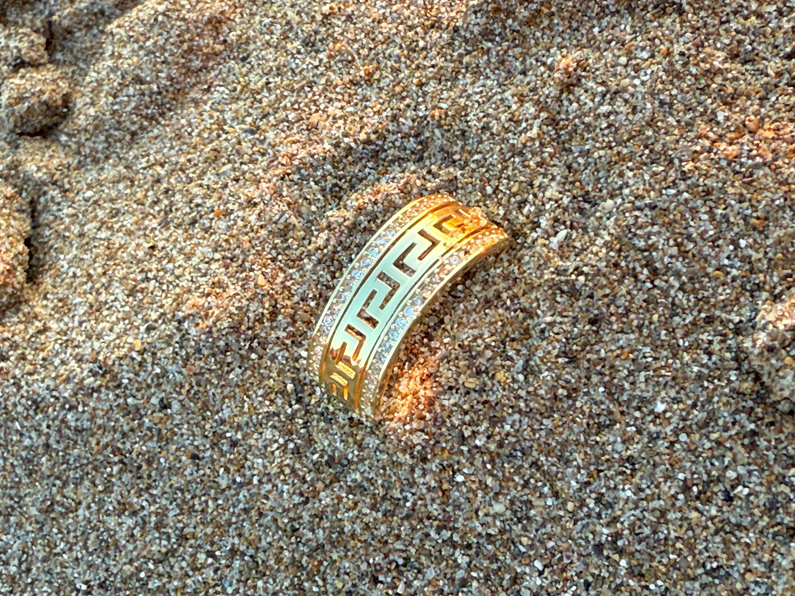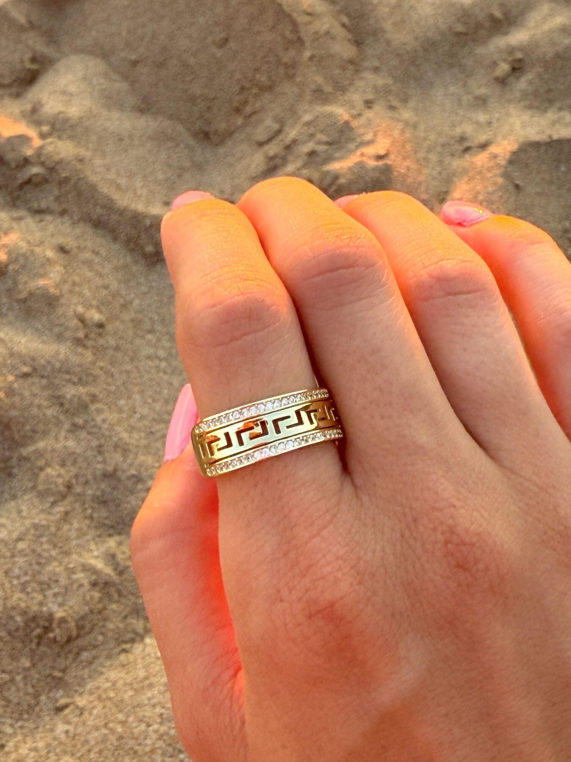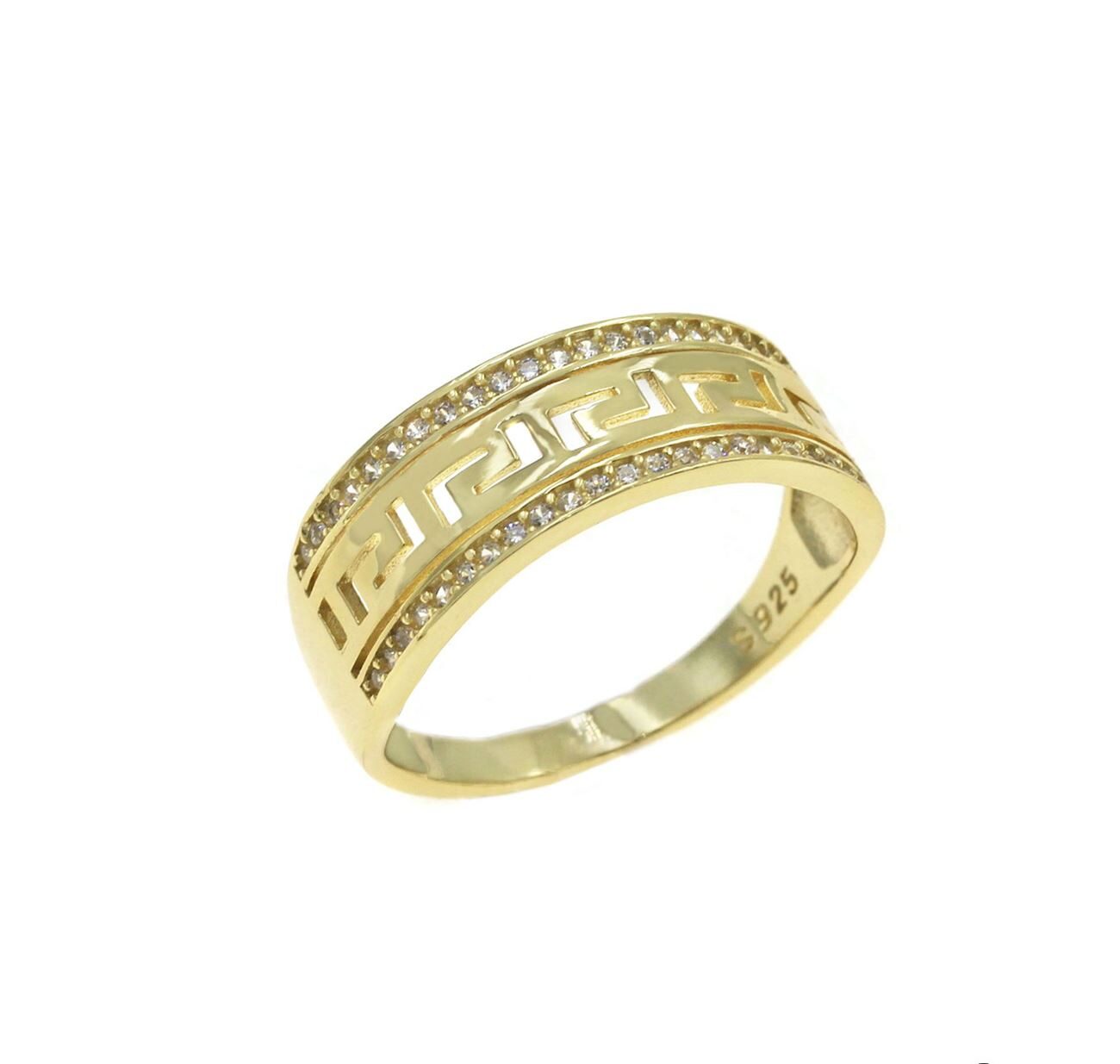 Greek Meandros Ring 8mm width with stones of cubic zirconia from Goldplated Silver 925