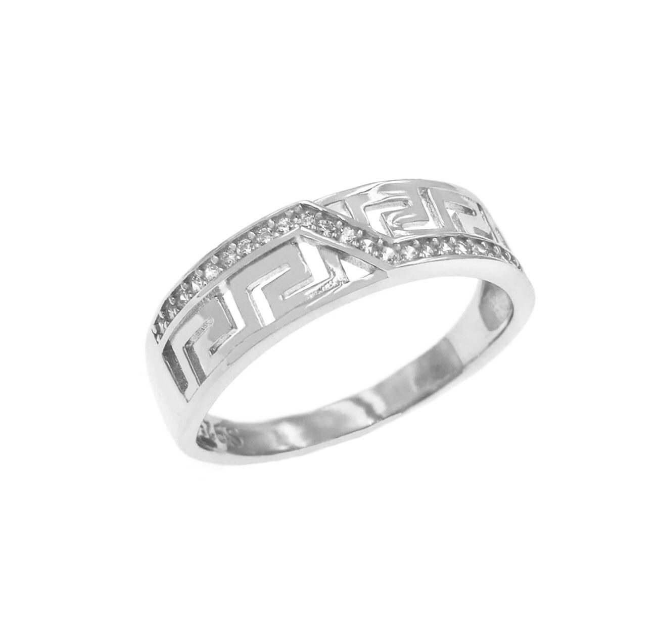 Greek Meandros Ring Silver 925 with cubic zirconia 6 mm width.