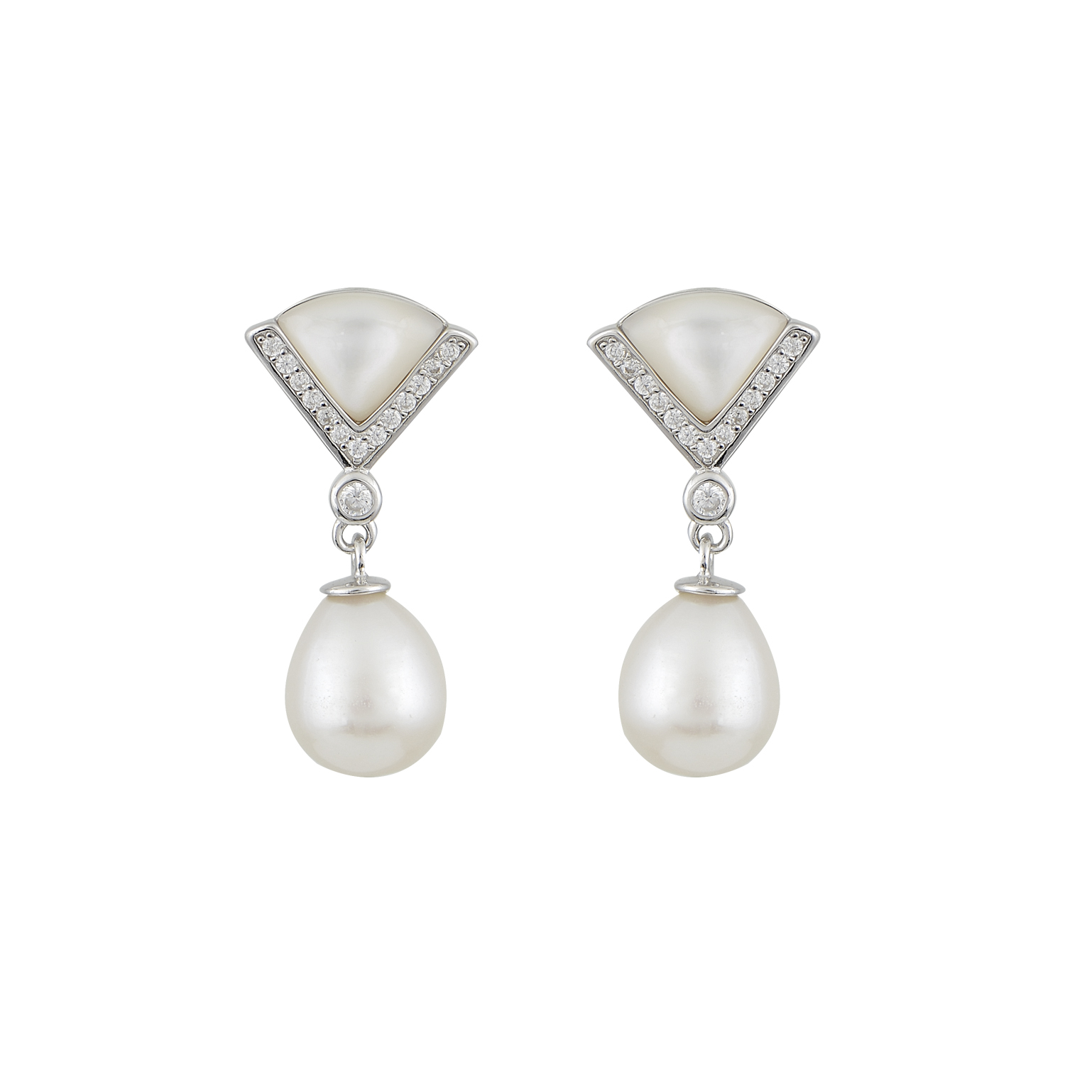 Fresh Water Long Pearl Earrings with Mother of pearl on top and cubic zirconia from Silver 925