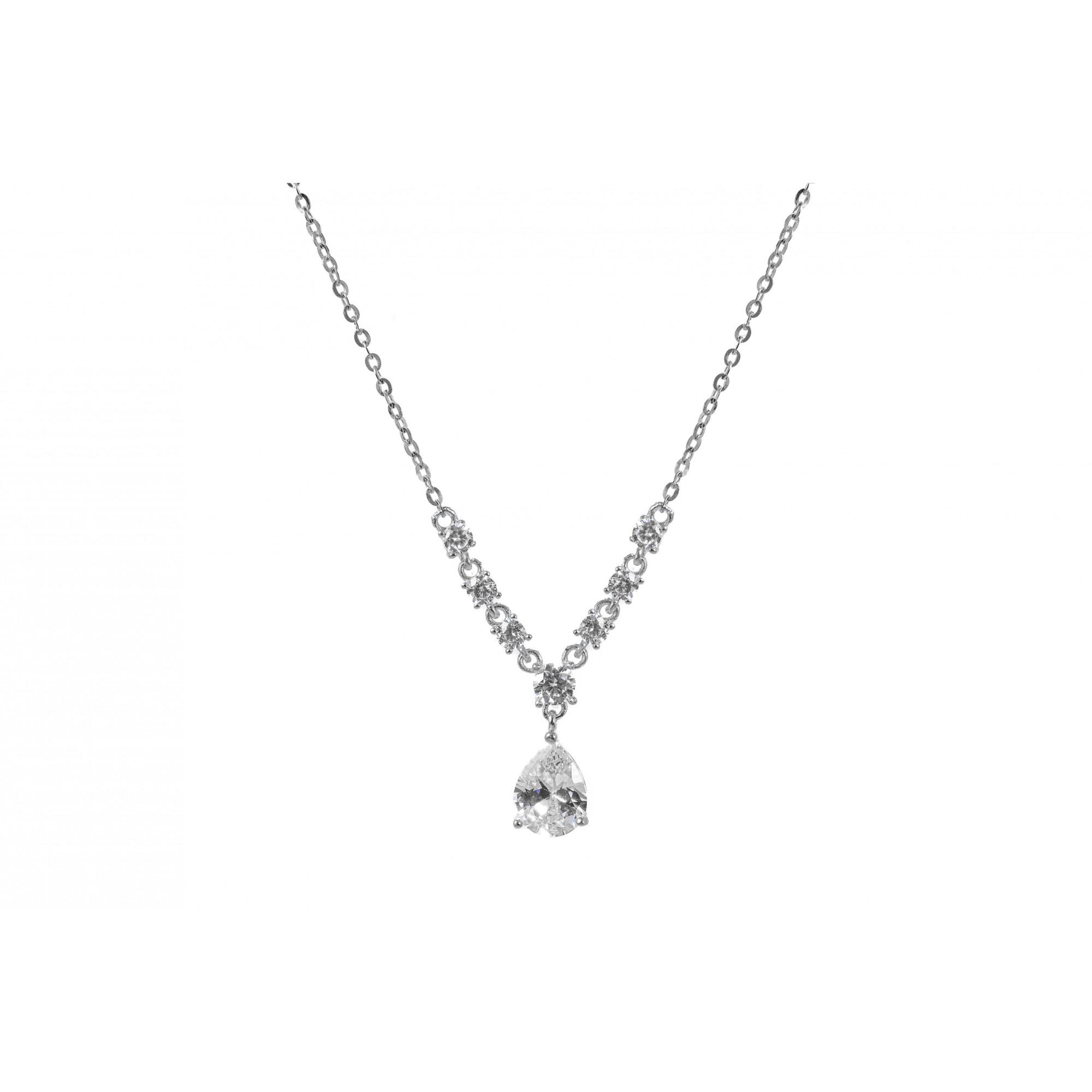 Pear Cut Cubic Zirconia Necklace – 925 Sterling Silver Drop Pendant
