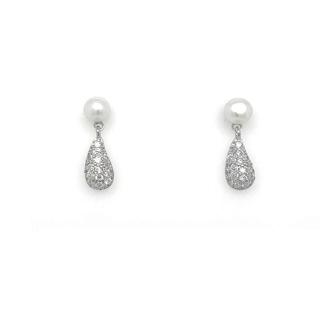 925 Sterling Silver Freshwater Pearl & Teardrop Drop Earrings